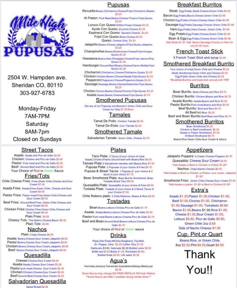Welcome to Mile High Pupusas, a vibrant culinary gem nestled in Denver at 707 Federal Blvd. This delightful ghost kitchen specializes in authentic Salvadoran pupusas, offering a mouthwatering array of flavors that will transport your taste buds. The menu features a variety of fillings, including chicharrones and jalapeƱos, each crafted with care to achieve a perfect blend of crispness and moisture that leaves customers raving.